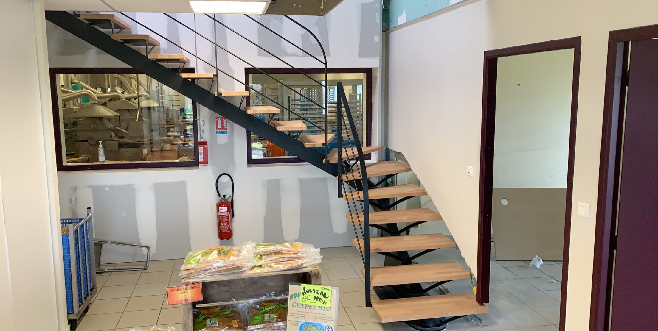 Pour un professionnel, l’escalier est avant tout un outil de travail. Il doit donc être solide, large et sécurisant. C’est pourquoi la célèbre Crêperie Bosser nous a fait confiance pour l’aménagement de ses locaux.