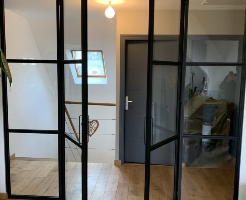 Vendredi dernier, nous avons réalisé la pose d’une verrière en acier sur mesure à Fouesnant, près de Quimper. Cet ouvrage métallique thermolaqué “noir sablé” apporte élégance et luminosité à l’intérieur de la maison.